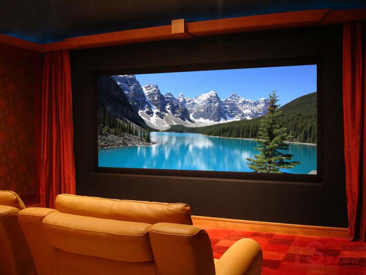 整个影院的音箱系统采用7.2声道环绕系统。音箱全部采用嵌墙式设计。幕布采用2.35:1的标准电影透声幕布,而要实现2.35:1的画面。我们为夏普Z30000投影机配备了专业的2.35变形镜头。这俨然是一个专业影院的配置。